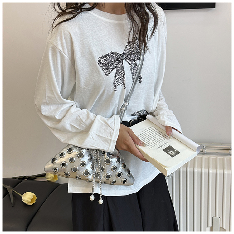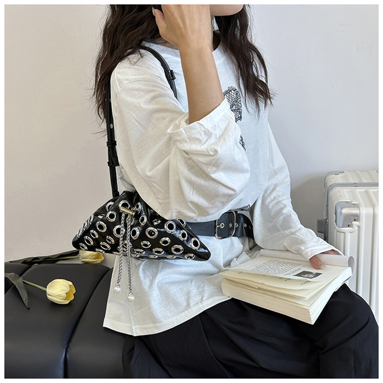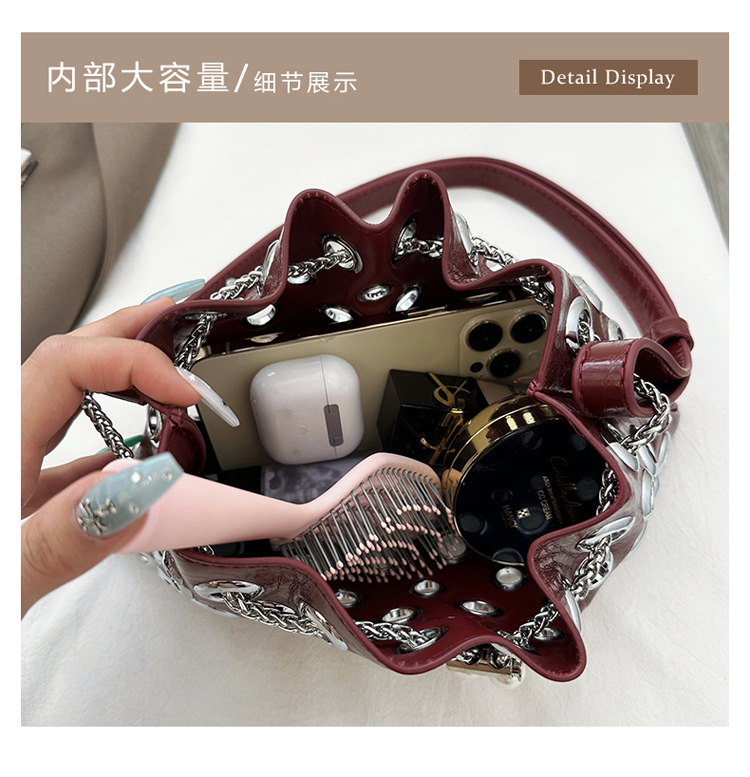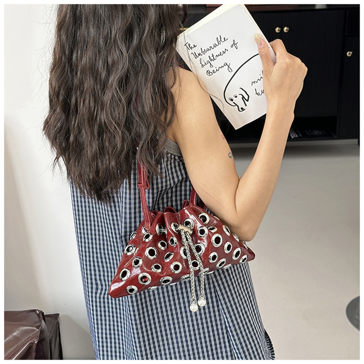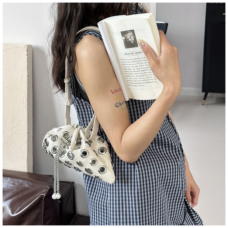 Cross-Border Textured Bucket Bag 2025 New Women's Bag Cut Out Rivet Should