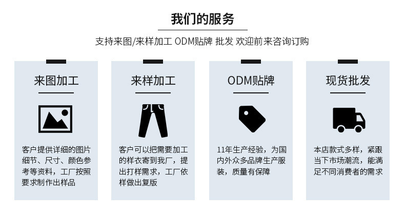 ODM OEM:11 years of production experience, producing clothing for many domestic and foreign brands, with guaranteed quality.