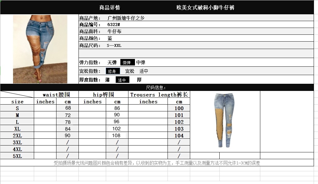 Wish Aliexpress European And American Cross-Border 2025 Large Hole Slim Jeans W